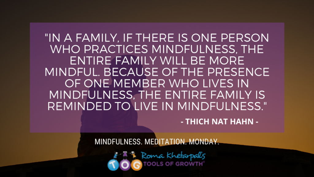 For those of you who have invested a full year with me on Mindfulness Meditation Monday, I want you to know that I am proud of each one of you. As many of you have shared, the dedication and effort that you have shown has translated into strengthening your daily formal practice as well – be it 5 or 10 minutes. Remember, no practice is too short! Most importantly, I am thrilled to hear that each of you has enjoyed deeper connections with your children, parents, partners, and loved ones! That’s truly the best investment you will make. When parents are mindful, we raise our children to be mindful, think positive, and do good—for themselves and those they are connected to.